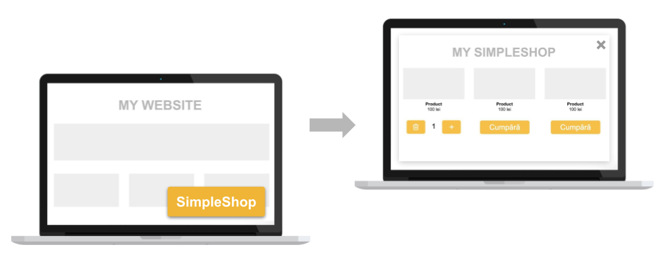 - SimpleShop funcţionează ca un plug-in, pe baza unui cod introdus în site-ul tău actual, şi transformă site-ul într-un magazine online, cu shopping cart şi inclusiv posibilitatea plăţii cu cardul